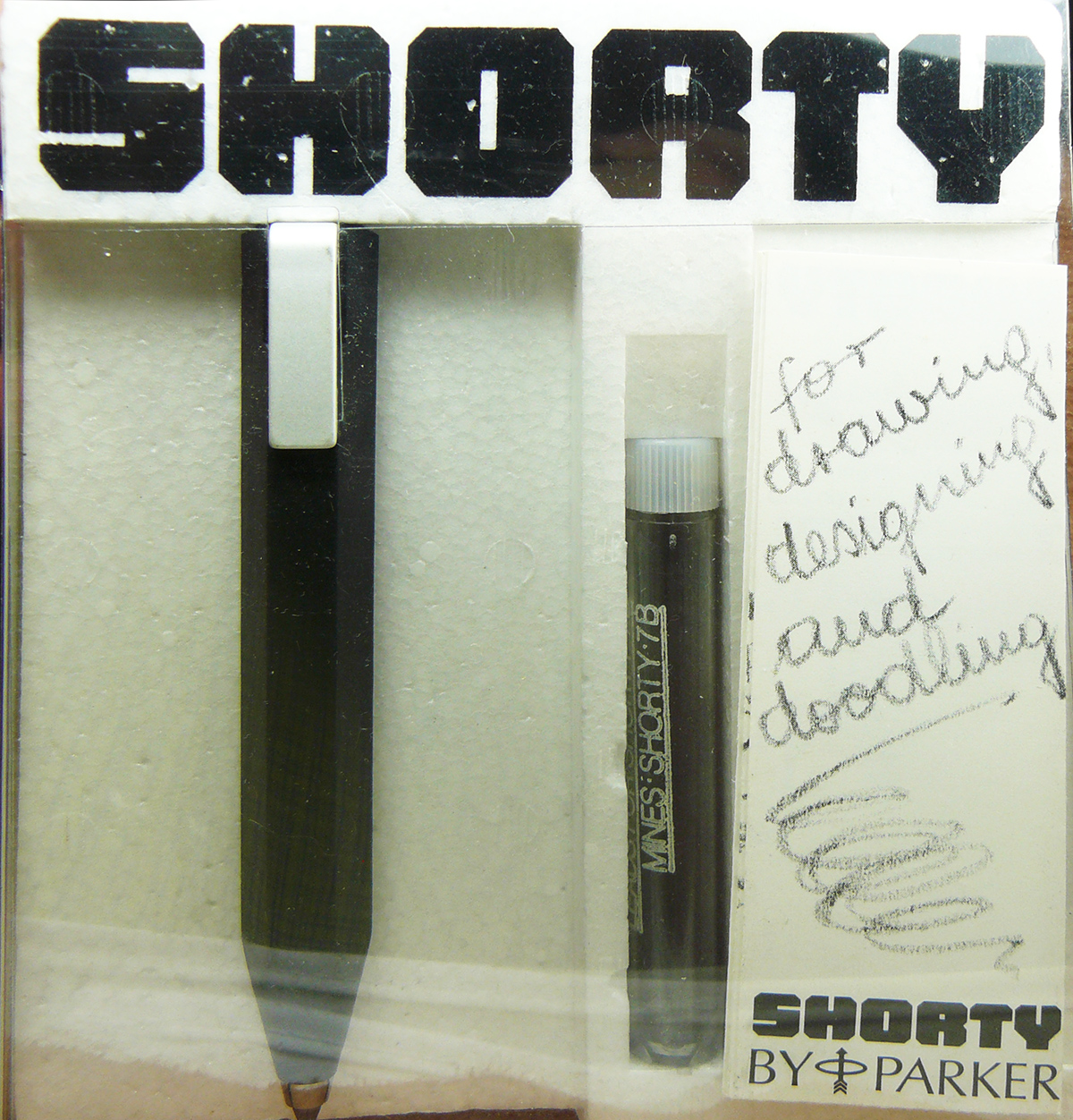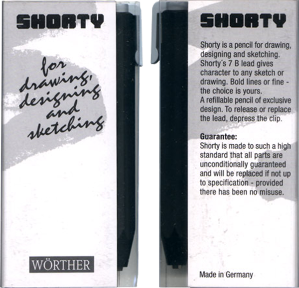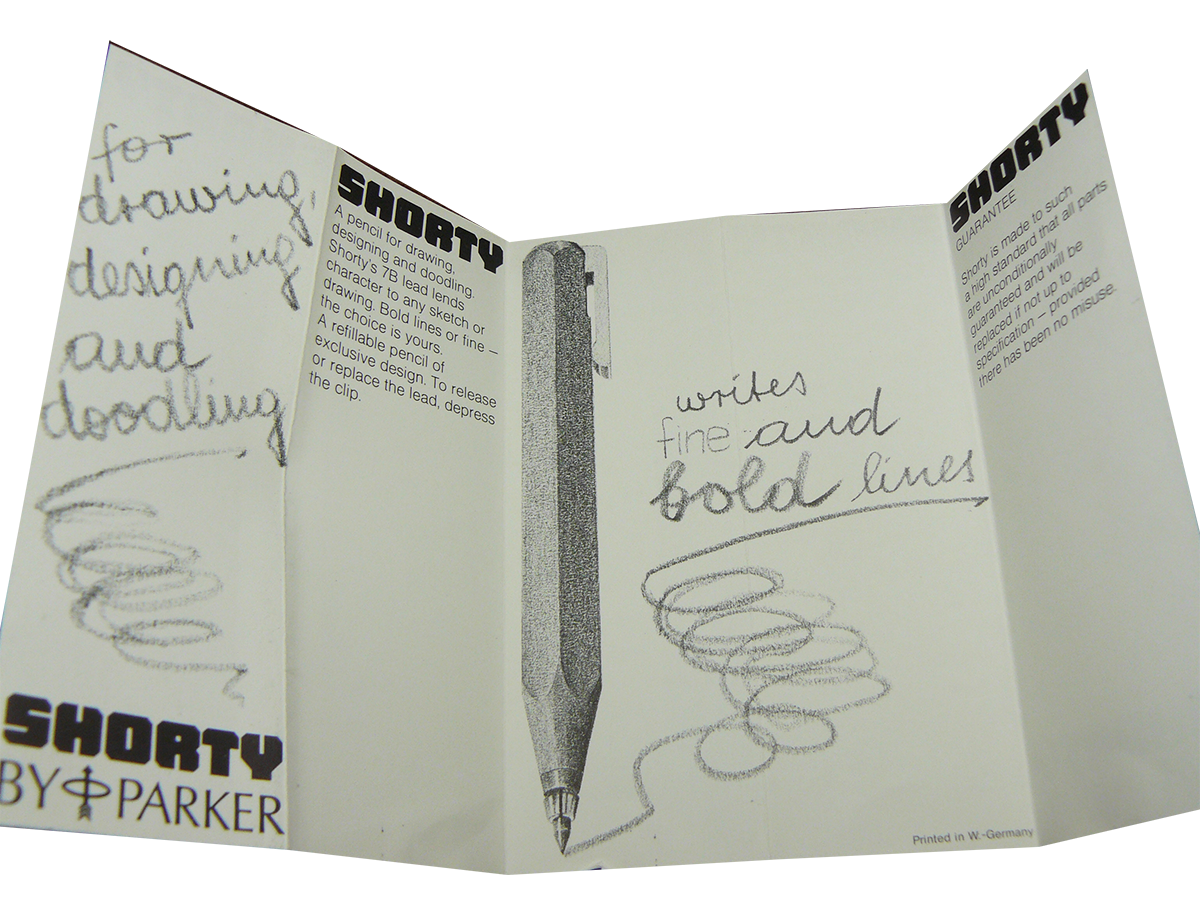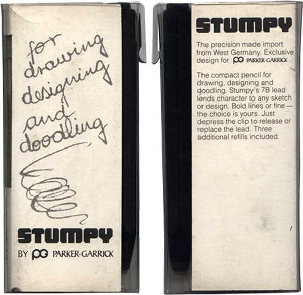 he Stumpy was a pushbutton, clutch sketch pencil made for Parker by the German manufacturer Wörthers in Baden-Baden. It’s hard to pinpoint when it was first sold, but it was probably launched in 1977-78 in Germany, since examples are found in the Parker archives with this date. While most pencils were manufactured to pair up with different fountain pen models, the Stumpy was made as a model of its own. While more a lead holder than a pencil the Stumpy was filed as a trade mark by Parker in December 1978 and registered in September of 1980. The first items to sell in the US were shipped by Parker in 1980, and distributed by Garrick in Dallas, Texas, a company purchased by Parker around 1971.